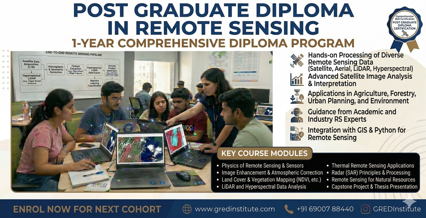 Comprehensive GIS and Remote Sensing programs covering spatial analysis, satellite image processing, ArcGIS, QGIS, and industry-level geospatial projects.